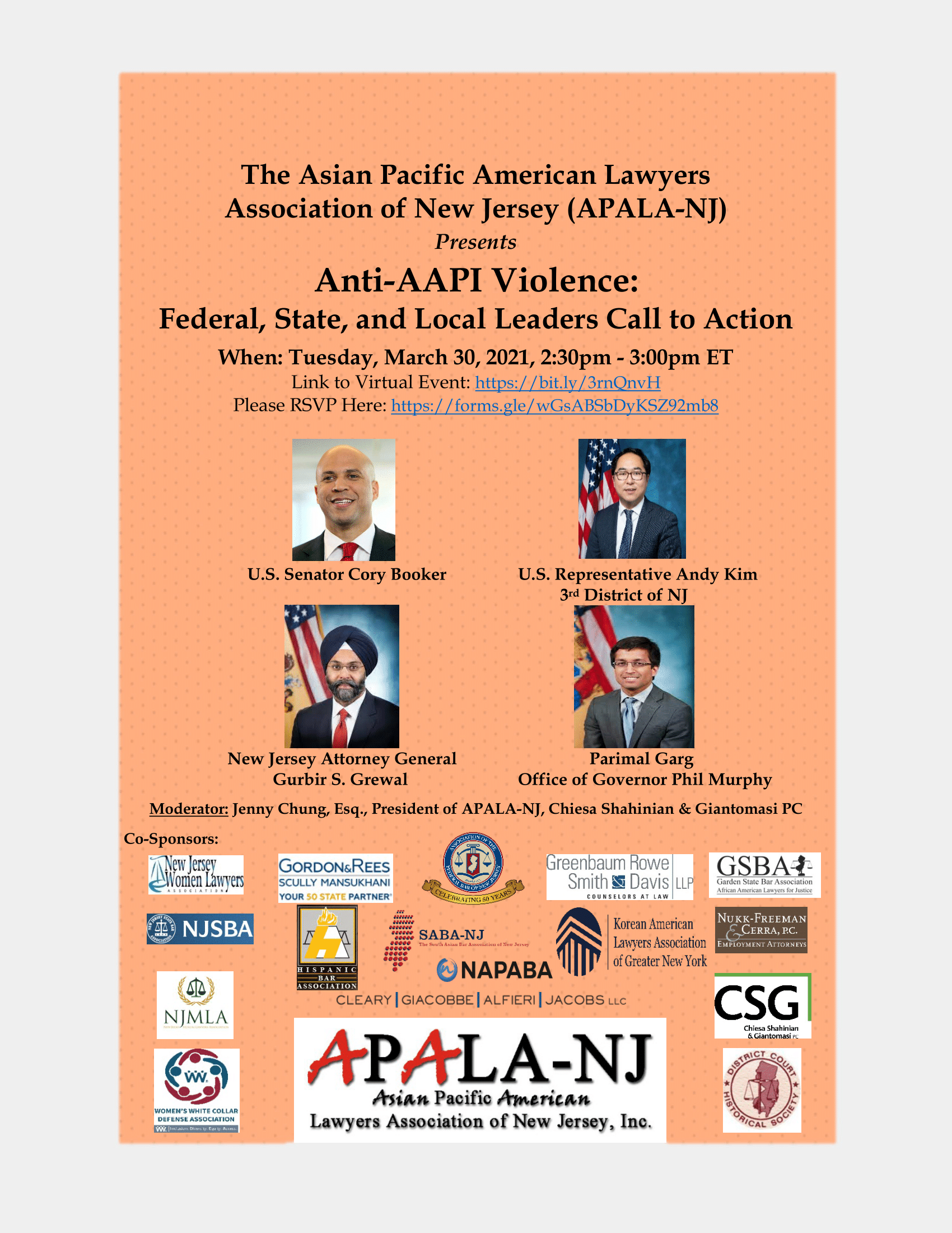 We invite our members and friends to join us for this important program by APALA-NJ.