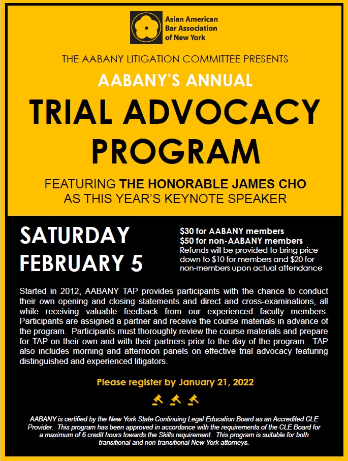 The AABANY Litigation Committee Presents: Annual Trial Advocacy Program