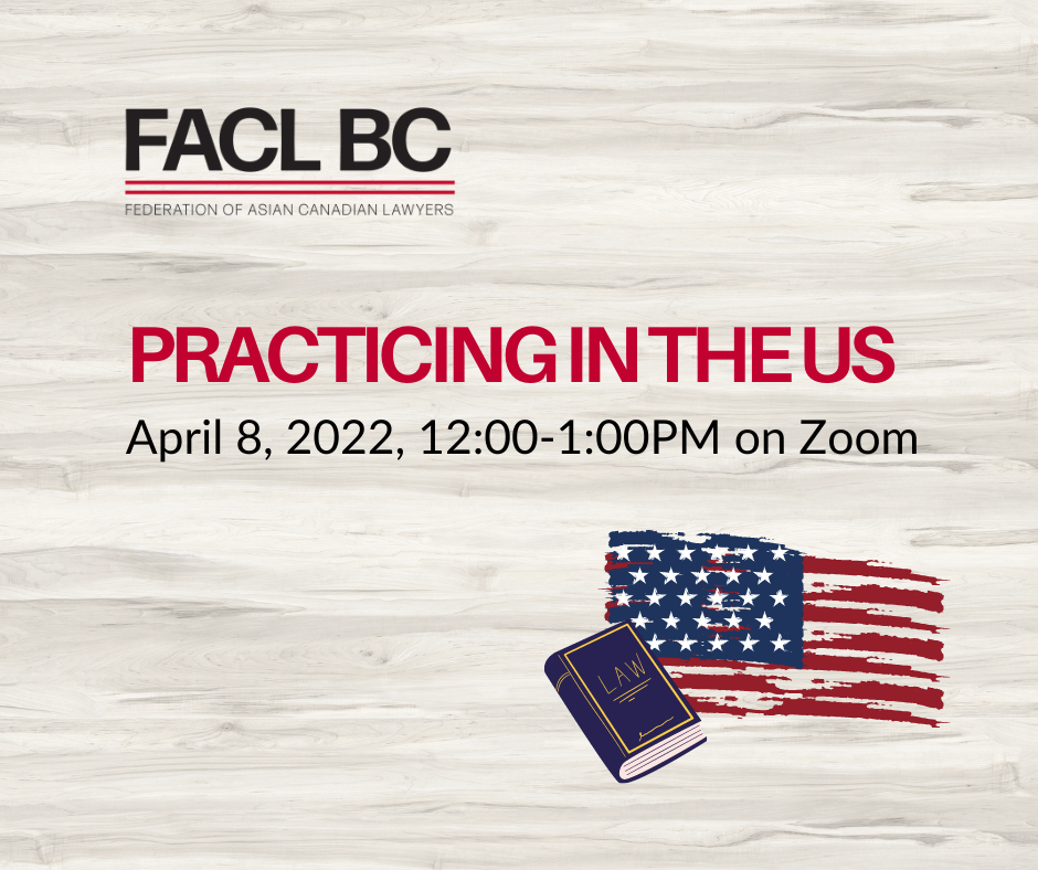 In the past year, Canadian legal practitioners have been migrating to the US legal market in increasing numbers. In this FACL BC panel event, we will have three Canadian lawyers now practicing in the US share their experiences with us. This lunchtime event will allow interested attendees to learn and discuss the logistics and issues involved with the transitional process.