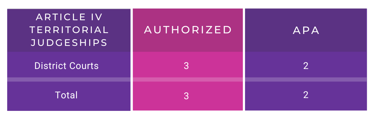 - 2 active AANHPI Article IV territorial district court judges: Chief Judge Frances Marie Tydingco-Gatewood (D. Guam); Chief Judge Ramona Villagomez Manglona (D.N.M.I.)